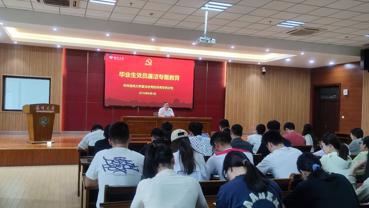 6月4日下午,学院在文体馆WN302报告厅举办毕业生党员廉洁专题教育活动。学院党委副书记蒋义刚出席活动并讲授主题党课,学院全体2024届毕业生党员参加。