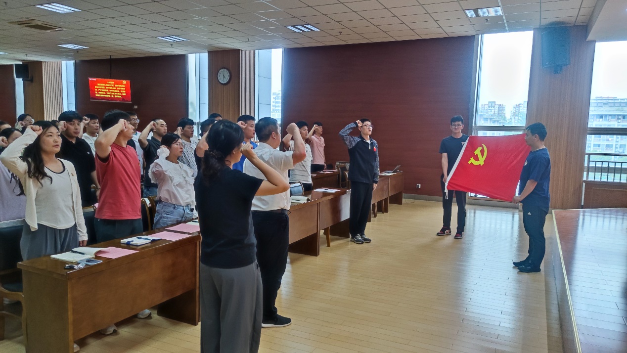 活动最后,全体与会人员面向党旗重温入党誓词。