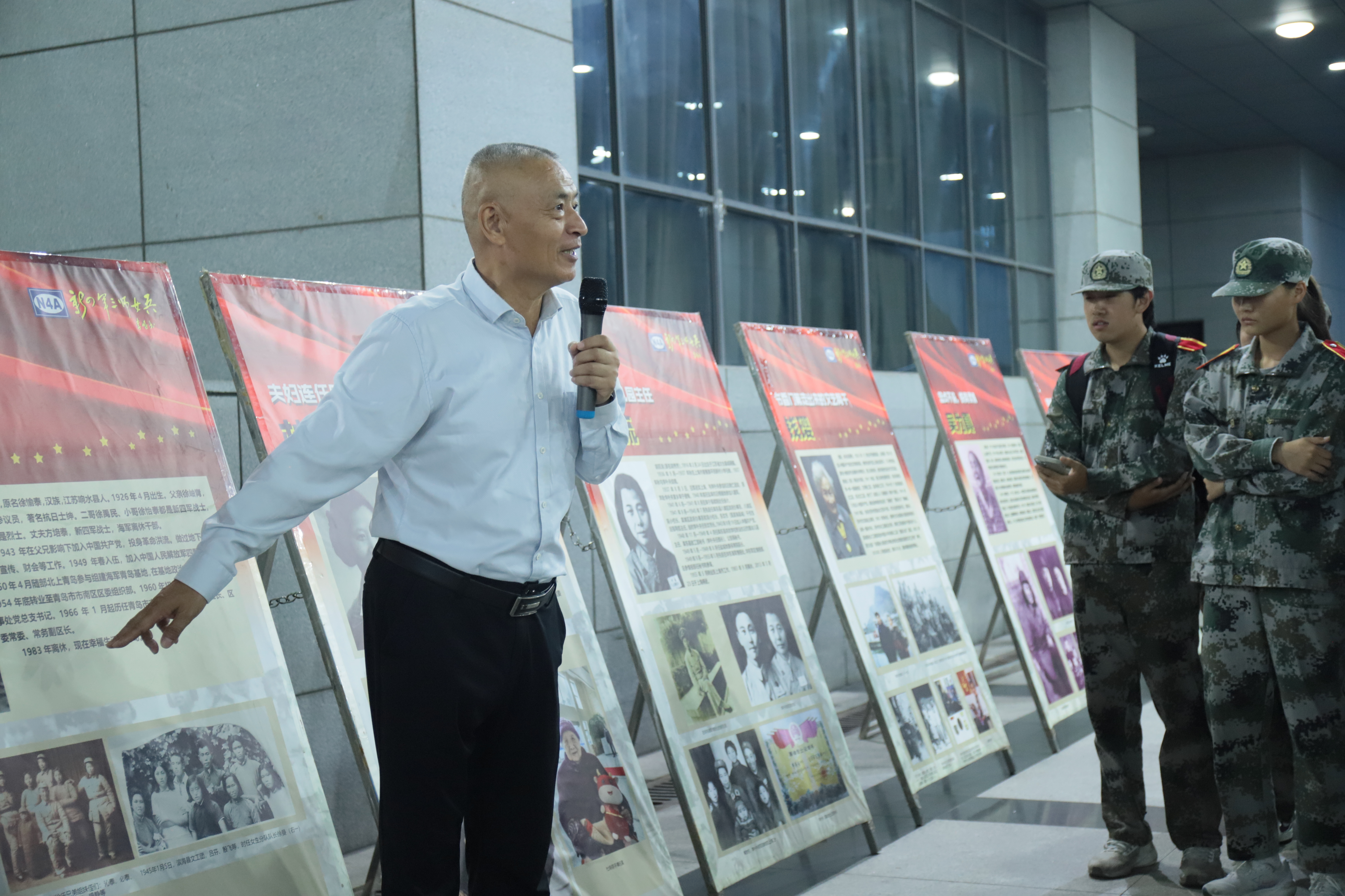 仪式现场,徐振理为大家详细介绍了新四军抗战女兵事迹展的策展背景与主要内容。新四军第三师是一支有着光荣历史和革命传统、能征善战、功勋卓著的英雄部队。在这支无畏的部队中,女兵们的身影格外夺目。在她们当中,有长征红军张文、侯正芳。有老红军吴为真,小沙东海战中,丈夫、三师参谋长彭雄壮烈殉国;再婚丈夫何凌登处长是抗美援朝第一位烈士。有新四军中姐妹花陈洛涟、陈克秋,在小沙东海战中,三姐陈洛涟和其丈夫三师八旅旅长田守尧双双殉国。妹妹陈克秋,今年105岁高寿,幸福生活在南京。有今年105岁,扬州大学滨海籍女兵周洁学,她在战斗中,两次躺在棺材旁,顽强地从死神手中逃生。通过徐会长的介绍,现场众人对于那段历史有了更为深刻的理解。
