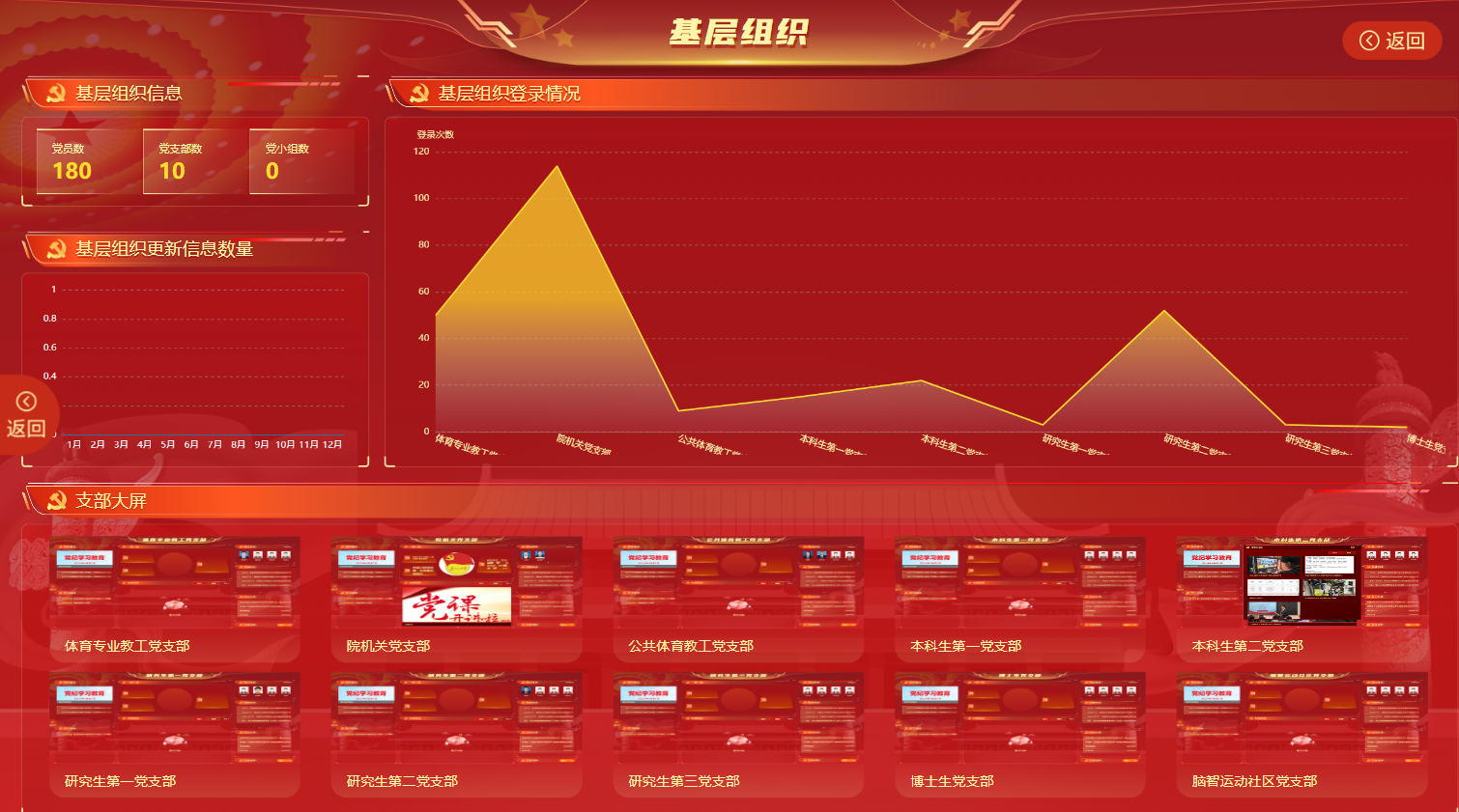 2023年以来,体育学院党委深入贯彻习近平总书记关于党的建设的重要思想,聚集传统基层党建存在的组织生活形式单一、党建信息不通达、党建质效难考核等问题,坚持互联网思维,推动组织工作数字化管理创新,创建了“扬州大学体育学院智慧党建”平台,初步实现了“四一四全”的功能,即 “一屏统览”,全覆盖反映学院党建工作动态;“一站统管”,全过程优化学院党建工作指导;“一部一屏”,全方位打造基层党建网络阵地;“一部一品”,全景式展示支部党建特色风采。未来,体育学院党委将持续优化“智慧党建”建设,逐步实现学院党建工作精细化管理、智能化决策、科学化评价,以数字化方式将全面从严治党向末端延伸、向深处推进,推动学院党建工作由“信息化”到“自动化”,进而向“智能化”和“智慧化”转变。